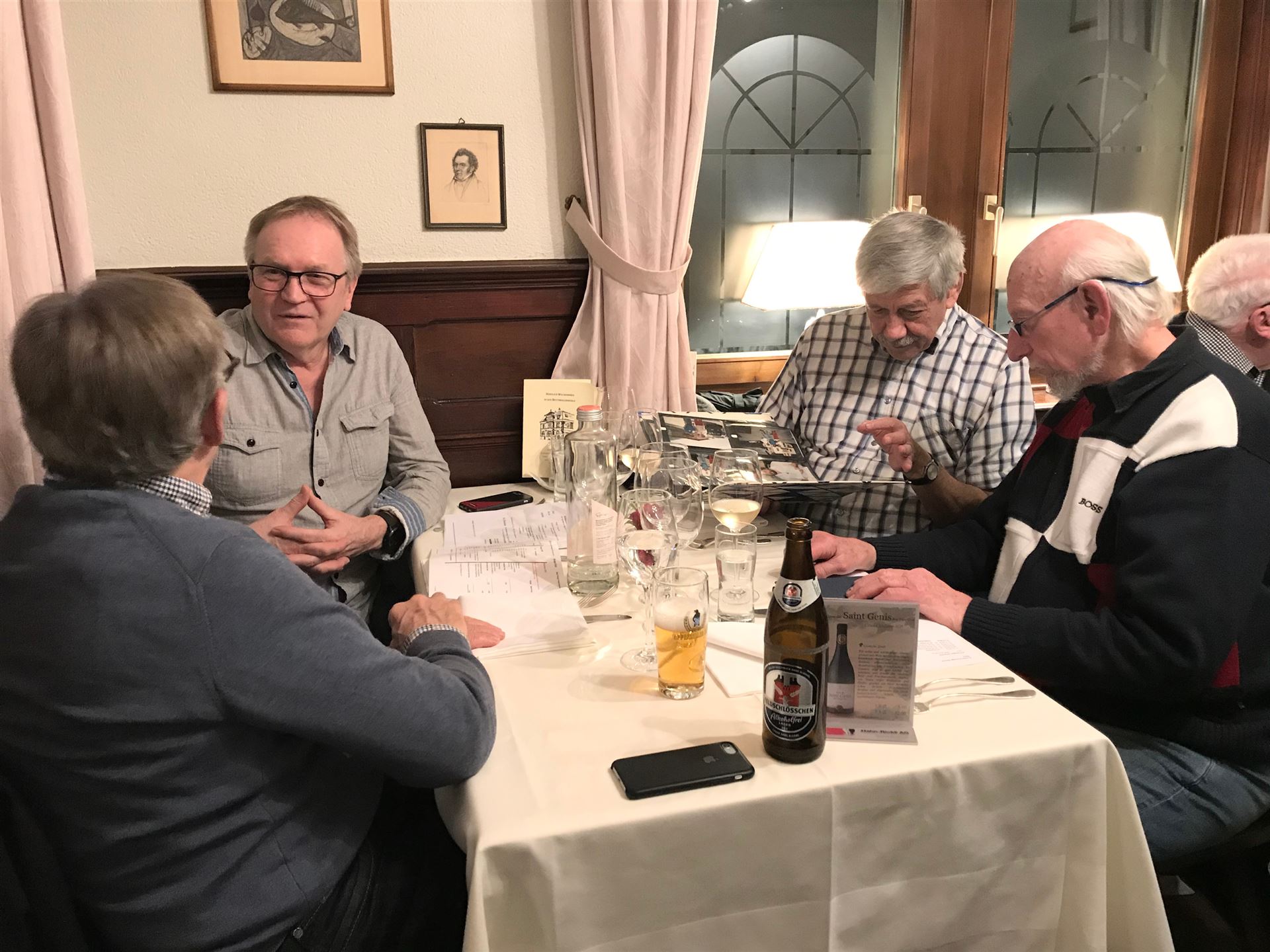 Die 11. ordentliche GV als Verein fand nicht wie angekündigt im Restaurant Ziegelei in Oberwil, sondern in Binningen im Restaurant Bottmingermühle statt. Das Restaurant in der Ziegelei ist geschlossen und zwar für immer, wie mir der Verwalter, Mathis Nyffeler am Telefon erklärte. Wir konnten mit 15 Teilnehmer die GV pünktlich beginnen. Ruedi Mohler und Peter Hofer waren entschuldigt. Als Alternative zur «Ziegelei» sassen wir zwar etwas eingeengt, doch die Geschäfte gingen zügig über die Bühne, dieses Jahr war ja kein Wahljahr. Das erste Mal dabei war auch Hanspeter Kolmos, er ist von den Weinfreunden zu den Zingge übergetreten. Das Menü – Nüsslisalat mit Ei, Kalbsbäggli mit Gemüse und Spätzli und zum Dessert ein frischer Fruchtsalat – mundete allen. Dem Koch und dem Personal ein Bravo! Hanspeter Eckstein dankte als Revisor dem Vorstand für ihre grosse Arbeit für den Club. Das wurde mit einem Applaus unterstützt. Die ersten gingen gegen 23 Uhr aufs Bähnli. Und die Letzten…..