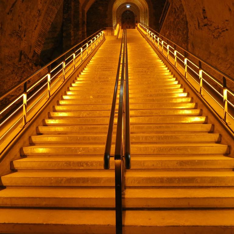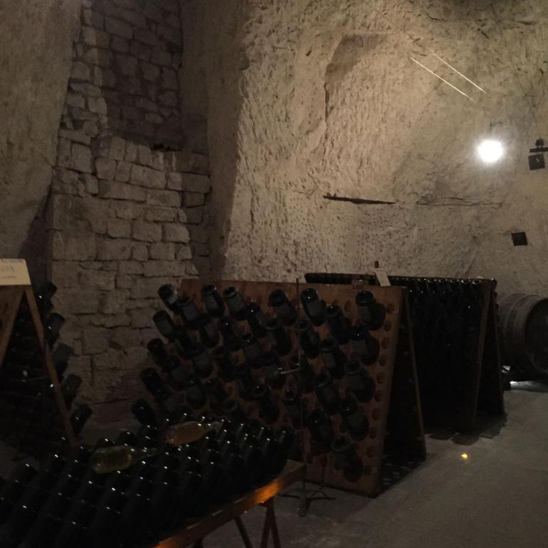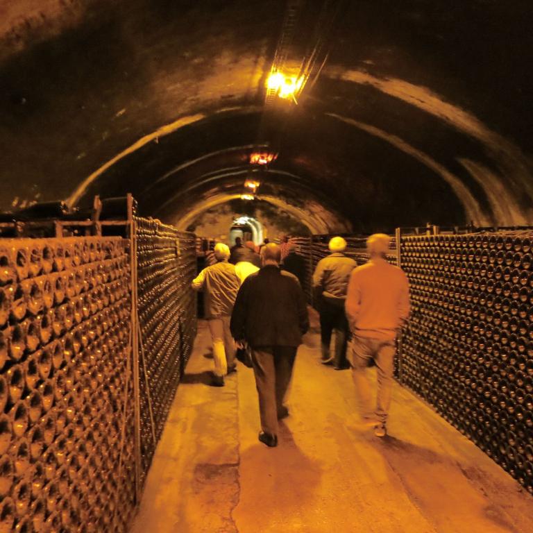 Bei Champagne Veuve Cliquot in Reims startete unsere Studienreise. Das Haus, früher unter dem Namen Veuve Cliquot Ponsardin bekannt, gehört zu den traditionsreichen Champagnerbetrieben, schließlich gibt es das Haus schon seit 1772. Heute gehört es zur LVHM-Gruppe. Veuve Cliquot verfügt über 24 km Kelleranlagen, die man in der Champagne in den Muschelkalk gegraben hatte und sie als "Les Crayers" bezeichnet. Die Crayers von Veuve Cliquot werden zu den schönsten der Champagne gezählt. Sie sind sehr sorgfältig gepflegt. Und im Hause gibt es einen besonders schönen Brauch: Langjährige Mitarbeiterinnen und Mitarbeiter werden geehrt, indem ein Kellergang mit ihrem Namen auf Straßenschildern bezeichnet wird. Eine solche Ehrung wird immer im Rahmen einer feierlichen Gangtaufe mit wichtigen Gästen vorgenommen. Zum ersten Mal hörten wir, welch großer Aufwand in der Herstellung von Champagner betrieben werden muß, bis das perlende Getränk ins Glas rollen kann. Dazu gehört auch die jahrelange Lagerung bis ein Champagner in den Verkauf gelangt. Zum Abschluß der charmanten Führung durch eine Luxemburgerin, die in jungen Jahren in der Schweiz gelebt hatte und ein sympathisches Gemisch von "Letzeburgisch", Schweizerdeutsch und Französisch sprach, gab es natürlich die Verkostung des weißen Veuve Cliquot.