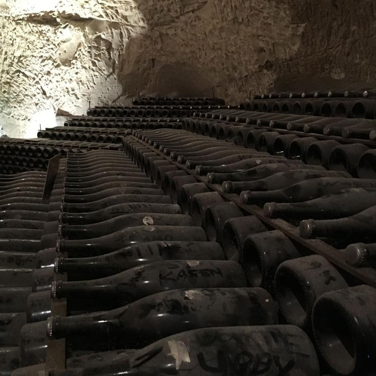 Das führte dann zu einem großen und anspruchsvollen Reiseprogramm. Mit dem TGV ab Basel und dann ab Straßburg auch im TGV-Tempo fuhren wir zum TGV-Bahnhof Champagne-Ardenne in der Nähe von Reims. Dort wartete schon unser erprobter Carchauffeur mit seinem Gefährt. Nach der Mittagsstärkung ging es zum ersten Keller.