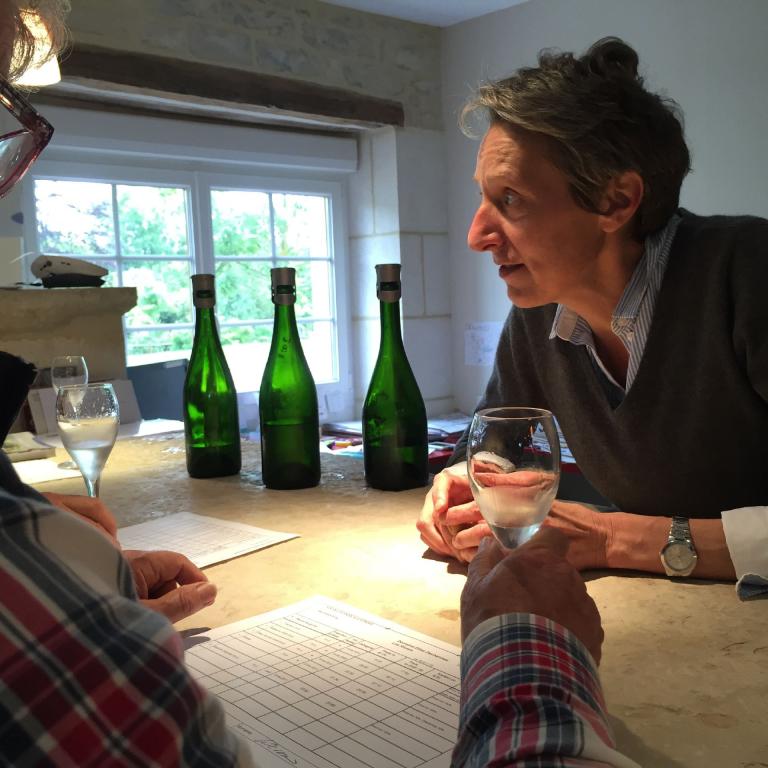 Am Vormittag besuchten wir Élise Déchannes in Les Riceys. Déchannes hat ein bißchen Kultwinzerinnen-Status, was sie auf sympathische Art mit ihren Präsentationen, ihrem charmanten Verkaufslokal und ihrem Biokonzept pflegt. Allein die Anzahl Kartons, die bei Élise eingekauft wurde, ist ein Beleg dafür, daß ihre Schäumer von sehr guter Qualität sind. Zudem bietet auch dieses kleinere Haus eine breite Palette von Champagnern an. Denn Champagner ist ein vielfältigerer Wein, als man gerne und gemeinhin so annimmt. So gibt es bei Déchannes neben einem normalen weißen Champagner auch einen Blanc de Blancs, einen raffinierten Rosé und auch einen Jahrgangschampagner.
